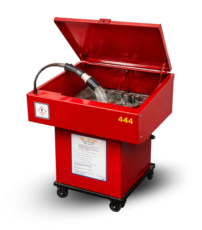 Es una lavadora de partes moderna diseñada para operar con desengrasantes cítricos reciclables, con temperatura de inflamación mayor a 75 °C, ideal para procesos de limpieza industrial eficientes y seguros.